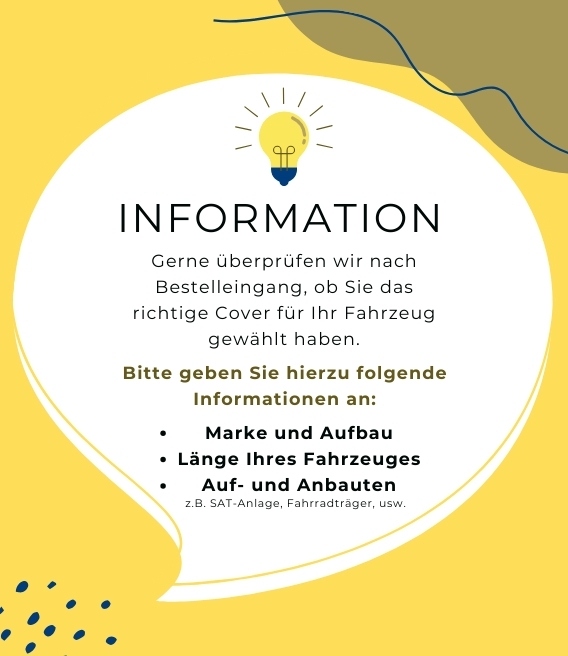 Um die richtige Größe für eine Schutzhülle für Ihr Fahrzeug zu ermitteln, sollten folgende Punkte berücksichtigt werden:
