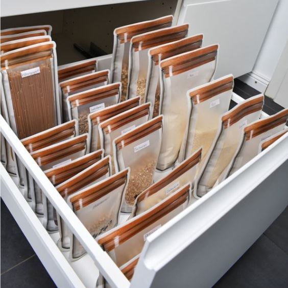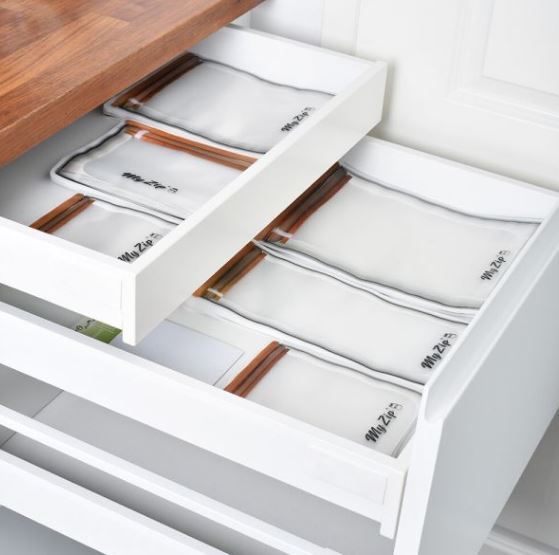 Die MyZip-Beutel Standard bieten eine platzsparende Alternative zu herkömmlichen Aufbewahrungsboxen und -gläsern.